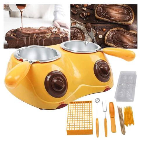 【مجموعة أواني الفوندو】تذوب الشوكولاتة وتحافظ عليها دافئة لسهولة الصب والغمس والرذاذ. من السهل إذابة الشوكولاتة بدون ماء، ومناسبة لأي نوع من أنواع الشوكولاتة والكوفيرتشر.