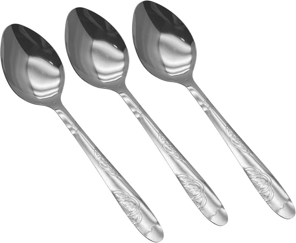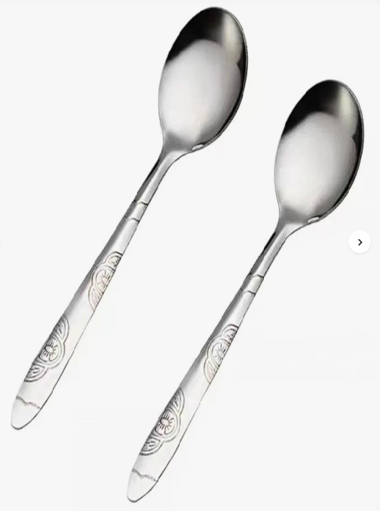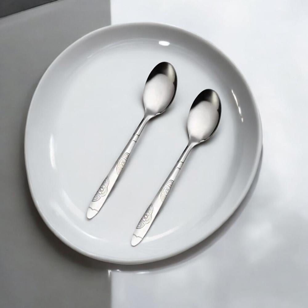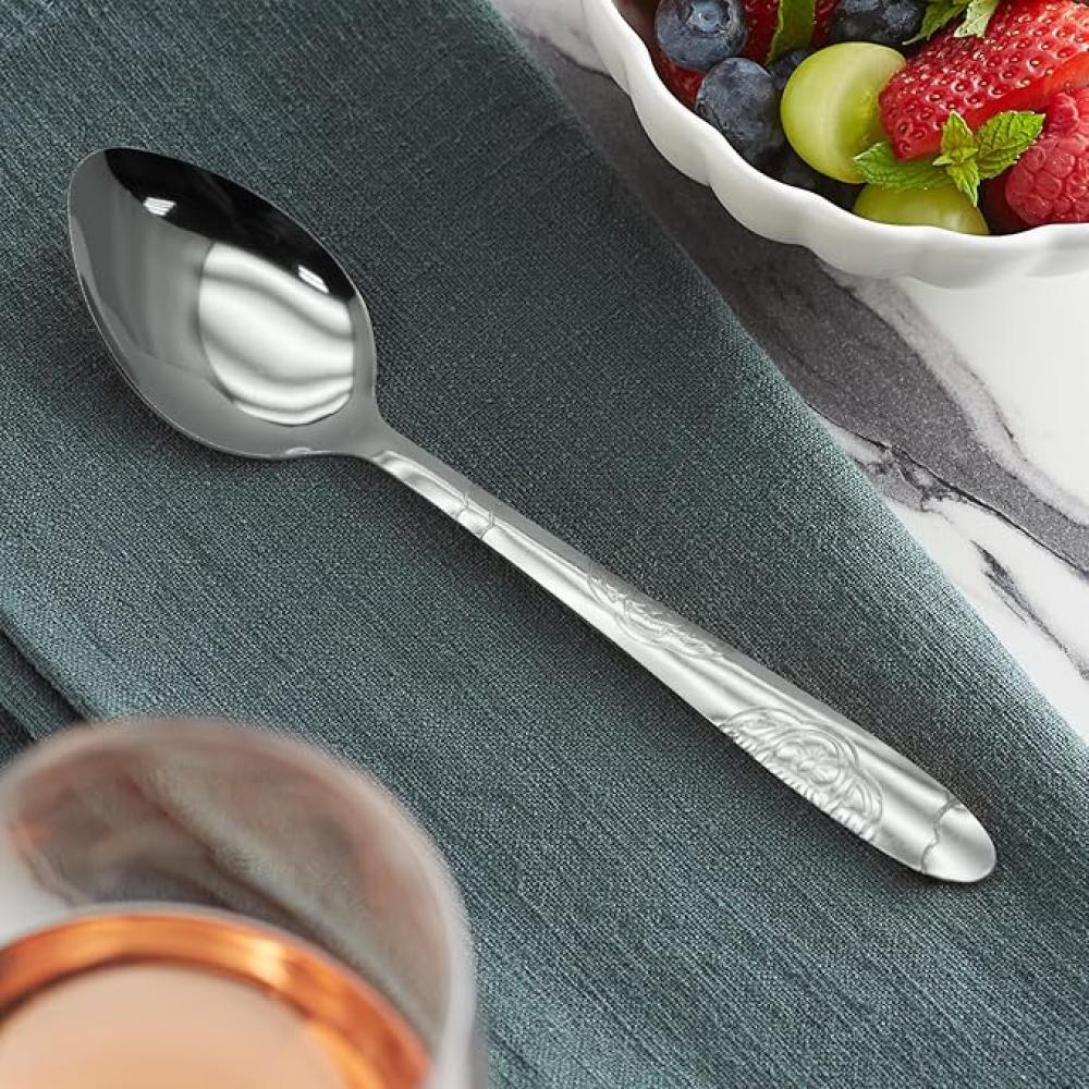 كبيرمجموعة ملاعق ستانلس معدنية أنيقة ، شكلها كلاسيكي وفخم ، ومزينة بنقوش جميلة على مقابضها.