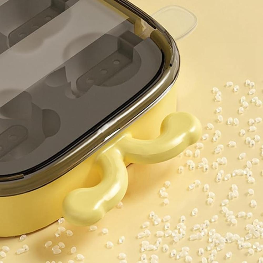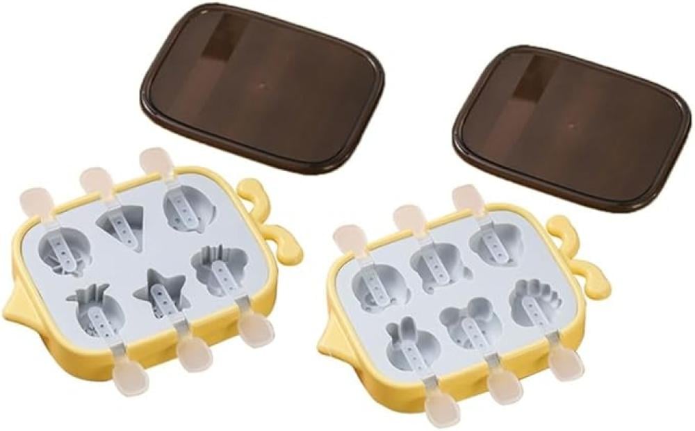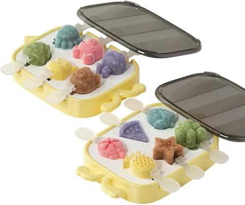 علبة قوالب مثلجات مع غطاء باللون الاصفر لعمل العديد من اشكال الفاكهة و النجوم