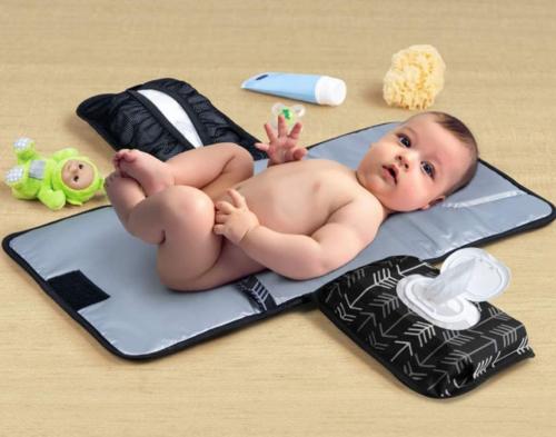 سعة كبيرة: تحتوي وسادة تغيير الحفاضات هذه على جيب بسحاب في الأمام، والذي يمكن استخدامه لتخزين الهواتف المحمولة والمناديل وغيرها من الأشياء عند الخروج؛ بعد فتح وسادة الحفاضات، يوجد جيبان على الجانبين الأيسر والأيمن، أحدهما عبارة عن حقيبة تخزين للحفاضات، والآخر عبارة عن حقيبة تخزين للحفاضات. بالنسبة لحقيبة المناديل المبللة، فهي أكثر ملاءمة عند تغيير حفاضات الطفل.